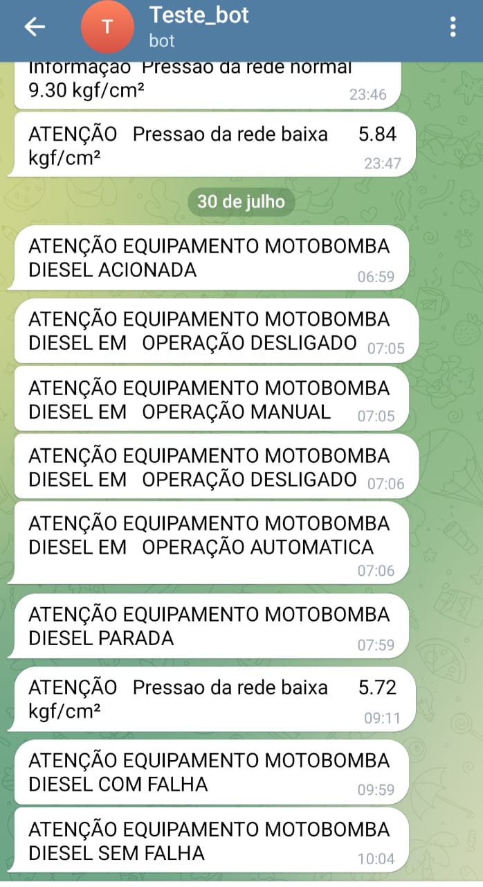 O monitoramento é aplicavel para Bombas Eletricas, Diesel e Jockey.